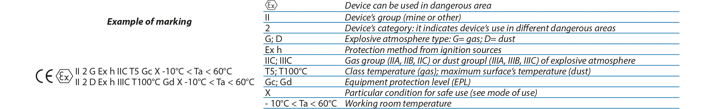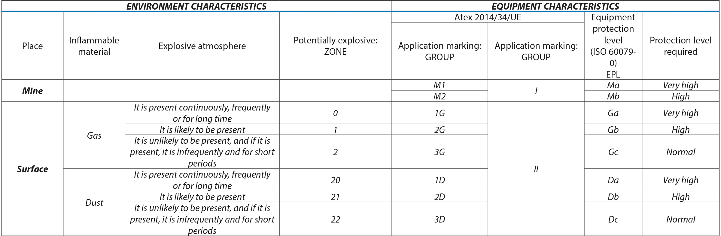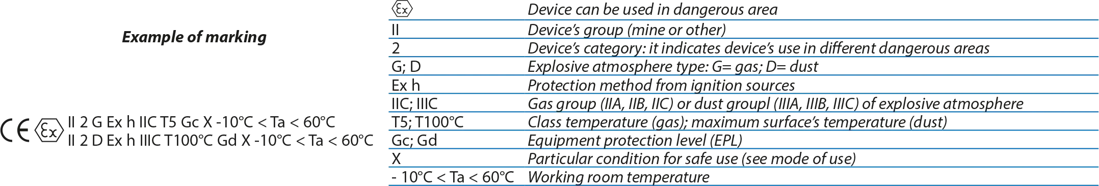 - Devices are assigned to categories which are designated for specific potentially explosive zones.